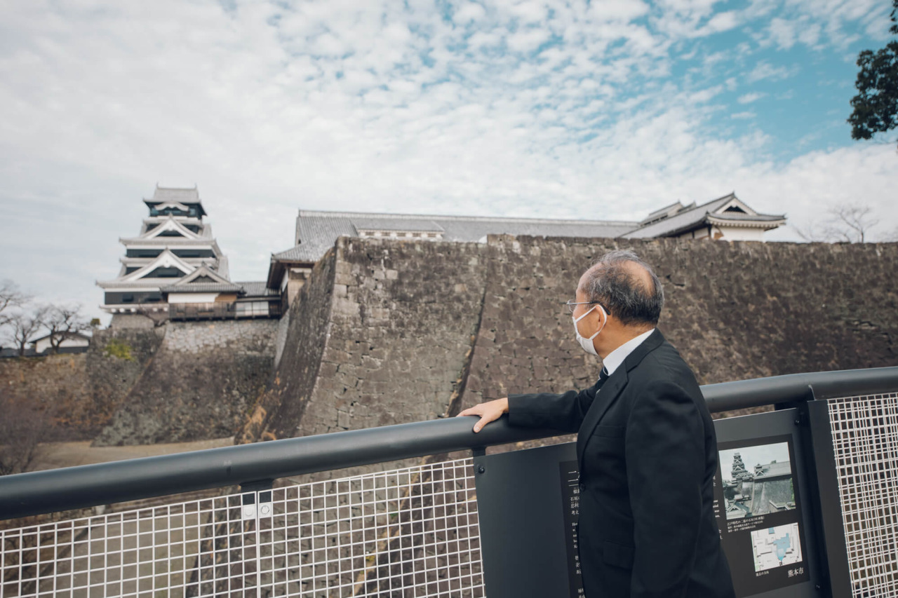 「日本のお城には平城(ひらじろ)、山城(やまじろ)などいくつかの形式があります。名古屋城などの平城は、住民との距離は近いけれど周りの施設に埋もれて目立たない。安土城などの山城は、高いところにあって目立つけれど住民との距離が遠い。一方で熊本城は『平山城(ひらやまじろ)』に分類されます。住民や市街地との距離が近く、それでいて高い位置にあってとても目立つ。そんな距離感も、お城が熊本市民にとって身近で誇らしい存在になっている理由の1つでしょう。」