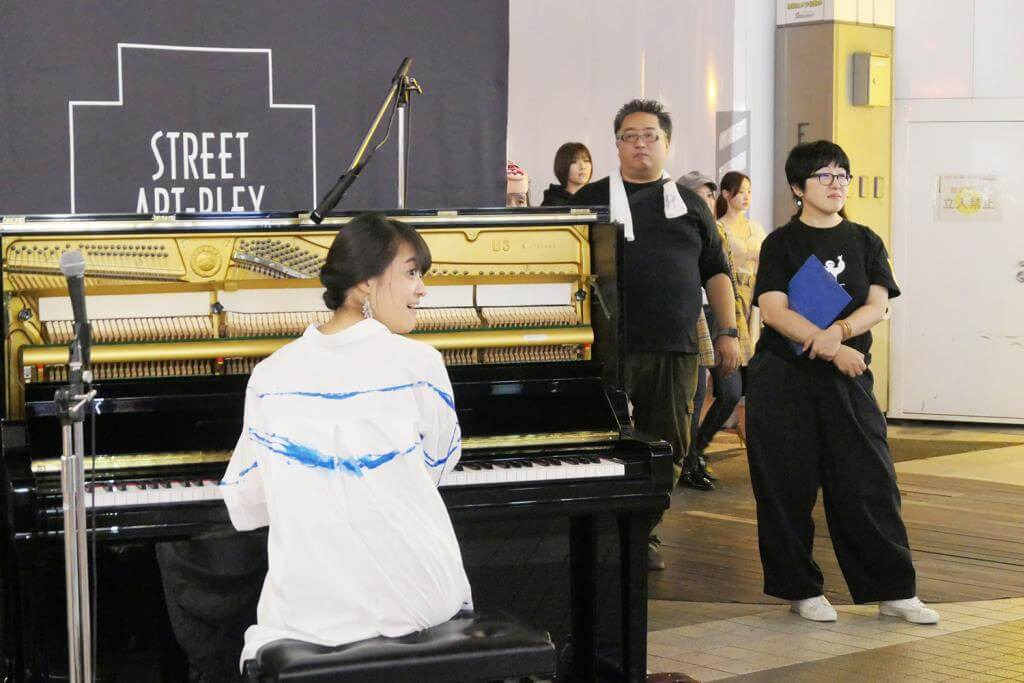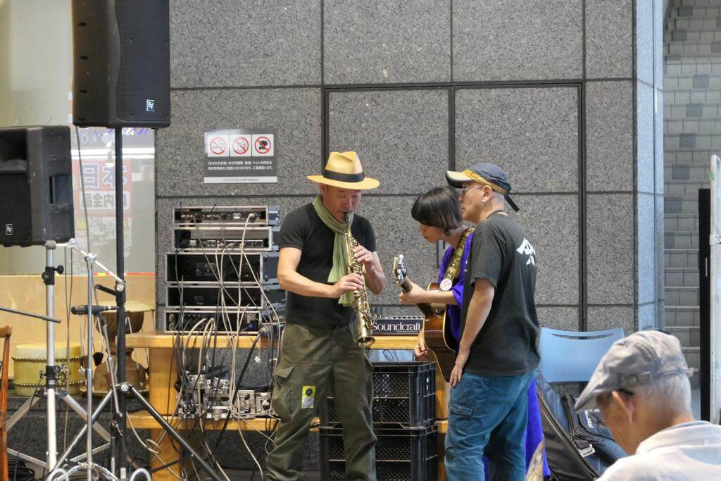 喫煙所で一服する人たちが、思わず聴き入っている姿も印象的です。