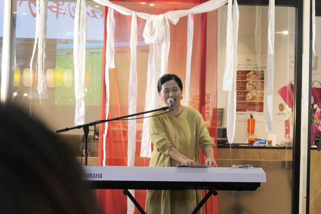 シンガーソングライター川原一紗は、キーボードで弾き語り。