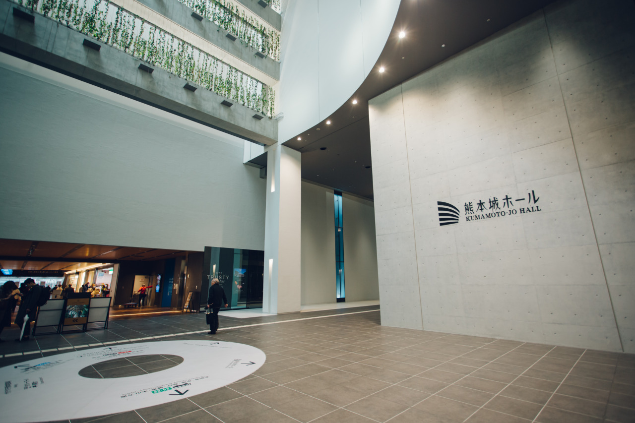 まず、一番に挙げるべきはこの立地ですね。熊本市の街の中心地にあることはもちろんですが、バスターミナルに直結、熊本駅までつながる市電電停も目の前という交通の便の良さは、大型ホールとしてとても恵まれています。