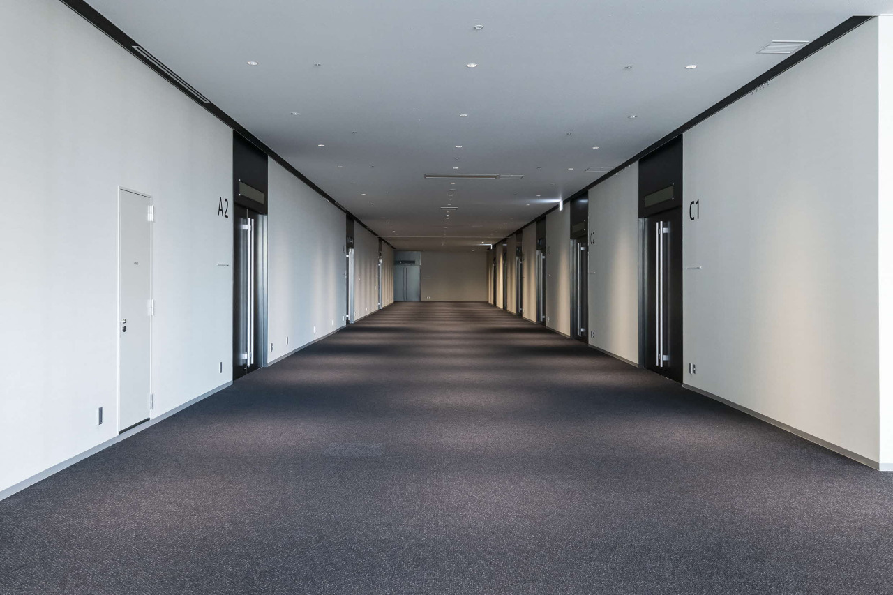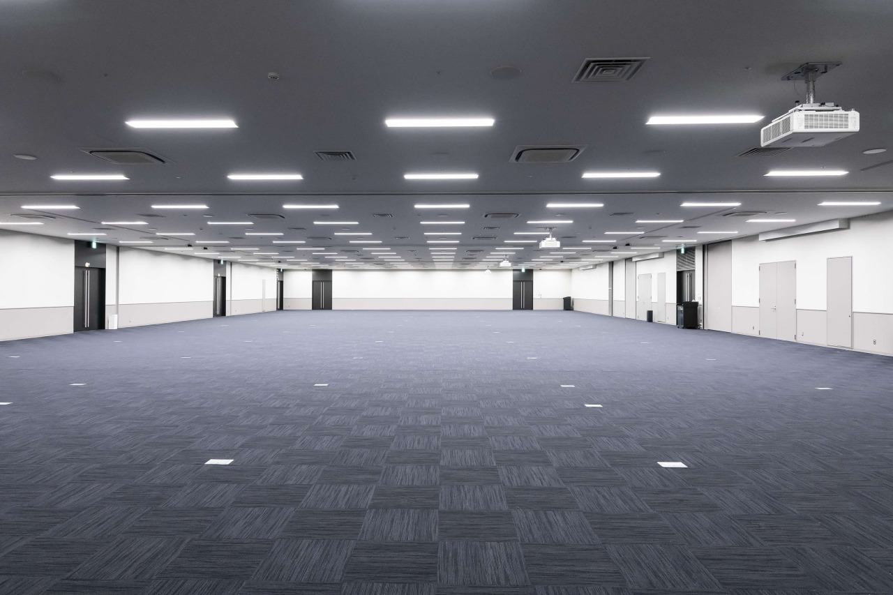 大小19室が並ぶフロアですが、大会議室は4室を連結することができ、最大で1,200平方メートルの広さを使うことができます。広い!