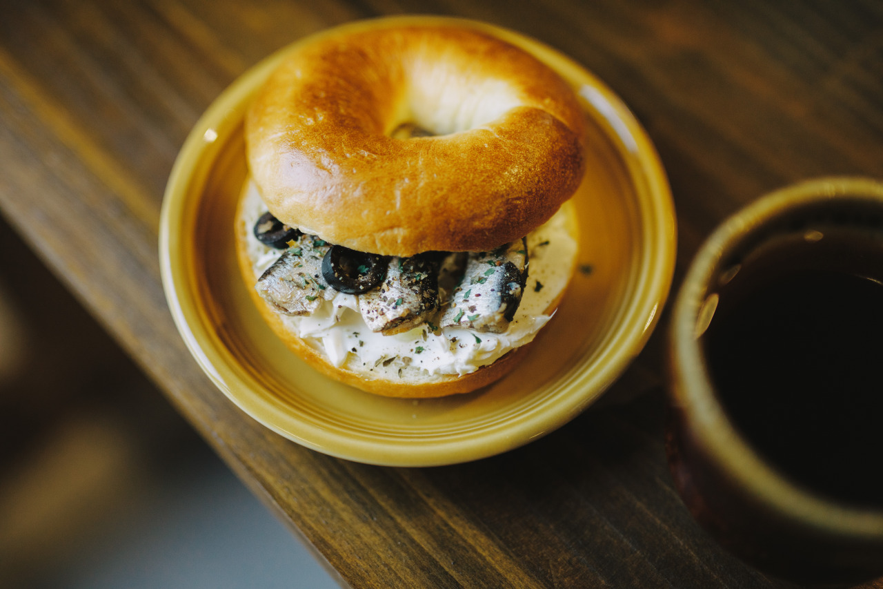 肝心のモーニングでいただけるのは、丁寧に焼き上げられた自家製のベーグルサンド。ベーグルはしっかりとした食感がありながらも重たすぎず、噛むほどに小麦の風味が広がります。砂糖と塩は少なめに、毎日食べても飽きないシンプルな味わいです。ベーグルサンドは5種類あり、おかず系と甘い系。写真は筆者がいただいた“オイルサーディンベーグル”で、オイルサーディンの塩気とオリーブの酸味、そこにクリームチーズが合わさり、もちふわのベーグルで美味。セットで頼んだコーヒーと一緒に味わえば、なんとも幸せな朝時間の出来上がりです。